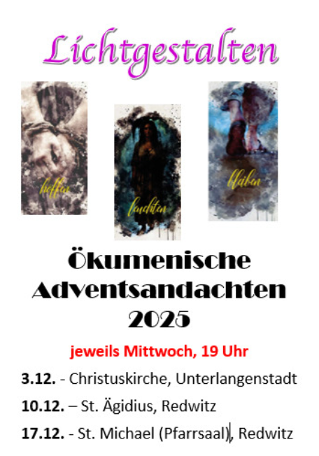 Ökumenische Adventsandachten an wechselnden Orten Weiterlesen über Ökumenische Adventsandachten an wechselnden Orten